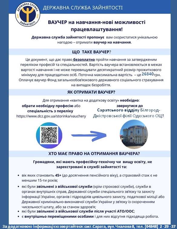 ВАУЧЕР на навчання-нові можливості працевлаштування!