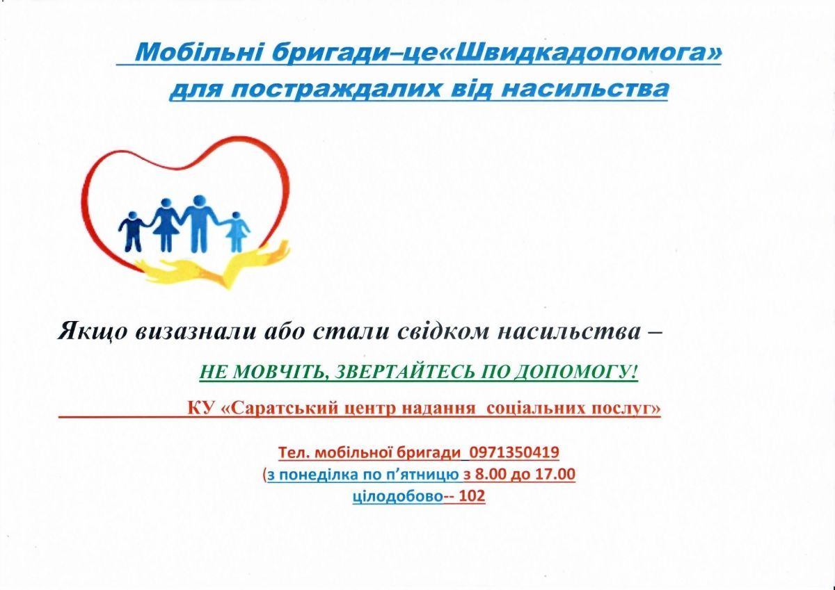 КУ «Саратський центр надання соціальних послуг» надає соціальні послуги: